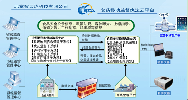 系統功能:現場檢測信息管理子系統、食藥監督子系統、許可審核子系統、日常巡檢子系統、風險預警子系統、添加物質合規判定子系統、庫文件管理子系統、抽檢任務管理子系統等八大版塊內容主體。