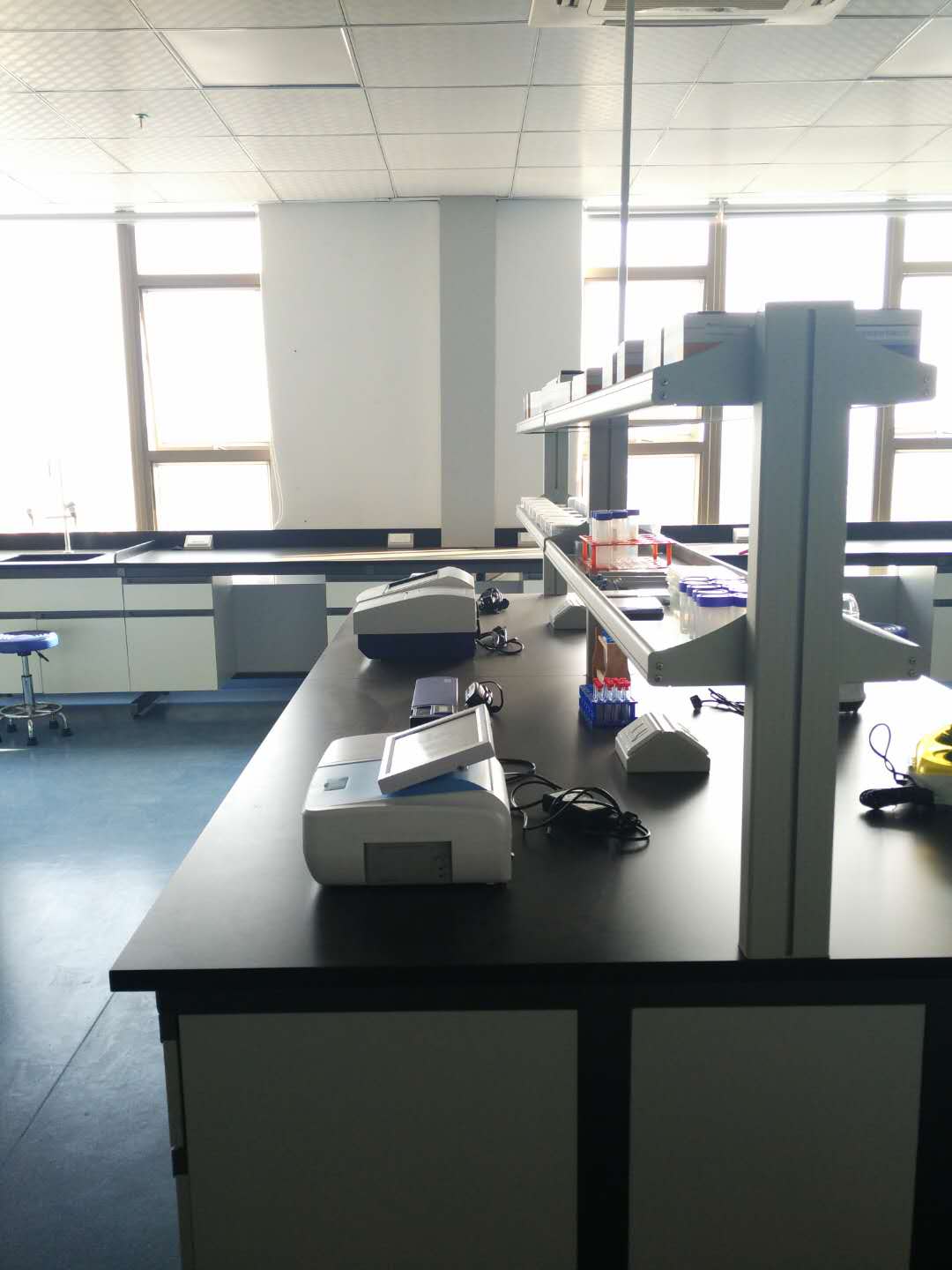 實驗室邊臺,通風廚、儲物柜、冰箱、空調、辦公設備等設施 |