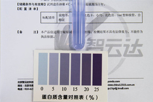 牛奶檢測結(jié)果顯示這6款兒童牛奶中蛋白質(zhì)含量最豐富的是圣牧和旺仔,為3.2g/100g;最低的是三元和新希望,為2.9 g/100g,一般情況下牛奶中的蛋白質(zhì)含量為3 g/100g。國標(biāo)規(guī)定對于兒童牛奶外加營養(yǎng)十分有限,選真正好牛奶要關(guān)注蛋白質(zhì),牛奶本身的營養(yǎng)主要來自牛奶中蛋白質(zhì)的含量。牛奶中蛋白質(zhì)含量也是判斷乳品質(zhì)量的指標(biāo)之一,而北京智云達(dá)研發(fā)的這款檢測乳品中蛋白質(zhì)含量的食品檢測盒,測定時間短,操作簡便,奶粉和液態(tài)奶都可進(jìn)行牛奶檢測,測定結(jié)果易于判斷。