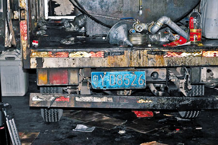 制假現(xiàn)場(chǎng),一輛改裝車(chē)的車(chē)廂中,黑乎乎的大油箱內(nèi)裝滿(mǎn)了劣質(zhì)油