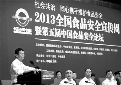 大自然保護協(xié)會中國主席馬云在全國食品安全宣傳周啟動儀式上致辭。
