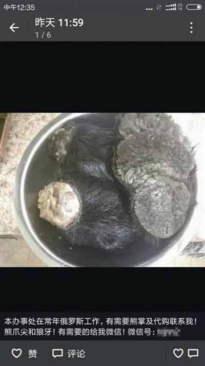 本文關(guān)鍵詞:微信朋友圈公然叫賣熊掌980元一斤 自稱有專門渠道“代購”