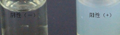 3min內(nèi),若上層出現(xiàn)黃白色渾濁,則可判定樣品中含有噻唑烷酮類物質(zhì),為陽性(+);否則判為陰性(-)。