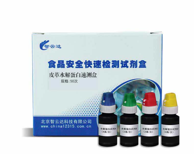 2. 取1ml處理好的樣品溶液于10ml比色管中,加入4滴皮革水解蛋白試劑A,搖勻,加2滴皮革水解蛋白試劑B,再加2滴皮革水解蛋白試劑C,搖勻,靜臵2分鐘,加4滴皮革水解蛋白試劑D,搖勻,沸水浴 1分鐘,取出觀察溶液顏色變化。【結 果 判 定】